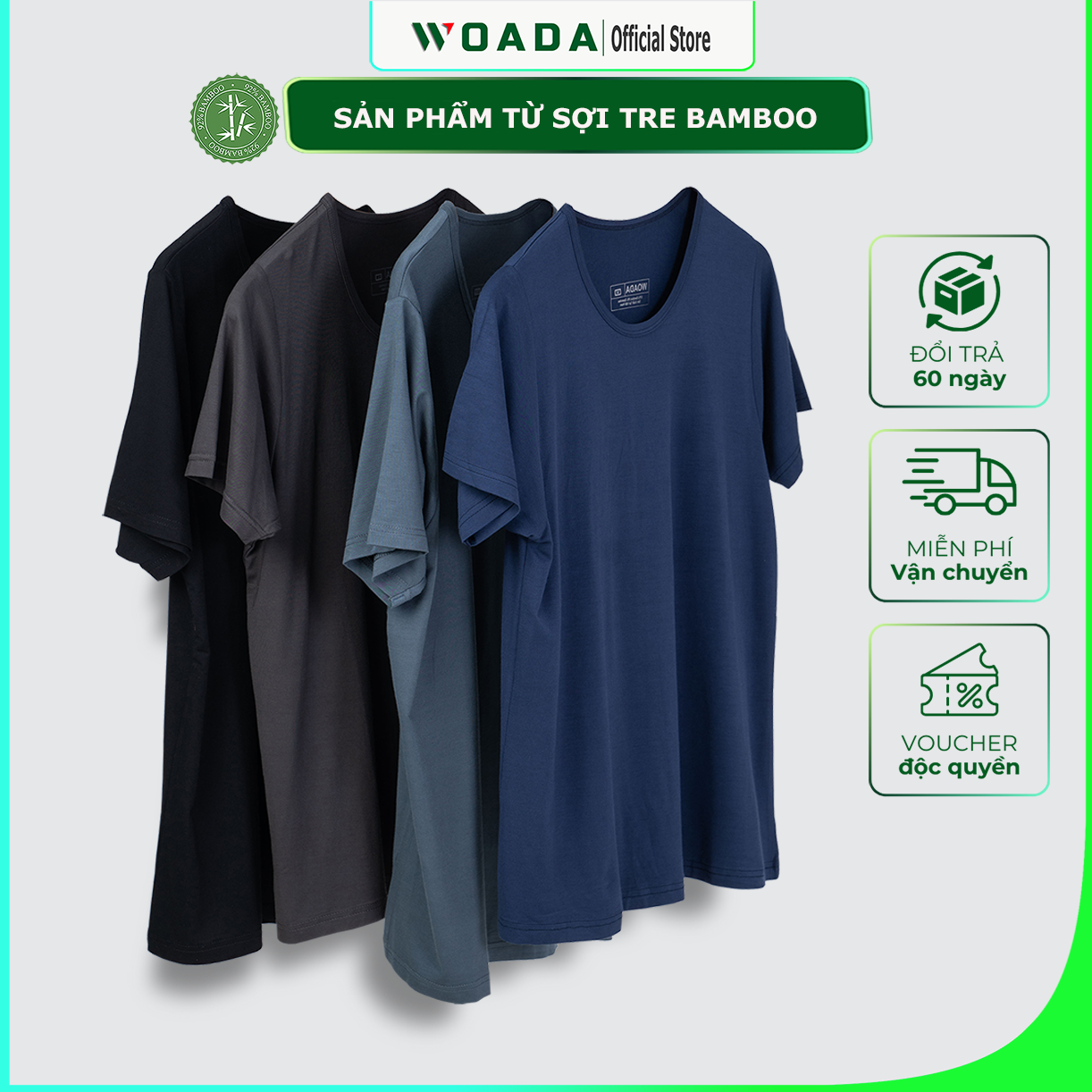 Áo Thun Nam Tay Ngắn Chất Liệu Bamboo Cao Cấp Mát Lạnh Thương Hiệu WOADA LKA15 được làm từ sợi Bamboo với ưu điểm sợi tự nhiên cao cấp, thiết kế vừa vặn, mang lại cảm giác thoải mái nhất.